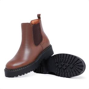Bota Chelsea Feminina Couro Versátil - 38 - Marrom