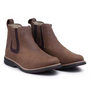 Bota Chelsea Masculina Couro Cano Curto Elástico Confortável - 39 - Marrom