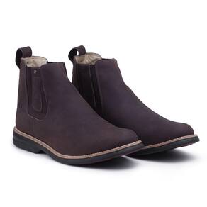 Bota Chelsea Masculina Couro Cano Curto Elástico Confortável - 41 - Marrom Cacau