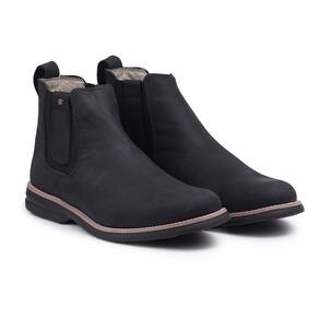 Bota Chelsea Masculina Couro Cano Curto Elástico Confortável - 44 - Preto