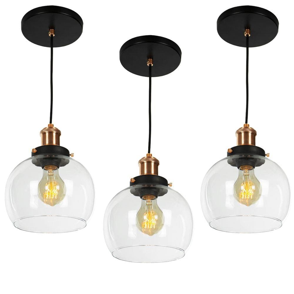 kit 3 Lustre Pendente Château Bola Media Vidro Preto /Cobre