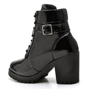 Bota Coturno Cano Curto Haldrys em Couro com Salto Medio Grosso e Detalhe Fivela - 35 - Preto