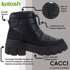 Com um design minimalista, destacando as costuras que formam volumes com toque fofinho ao longo de todo o calçado, a Bota Kolosh de Cano Curto Preta estreia com muita versatilidade, com etiqueta emborrachada aplicada na lateral, proporcionando um visual moderno e cheio de atitude. De calce fácil, traz um fechamento diferenciado na região frontal, através de um cadarço regulável, com o auxílio de um puxador no calcanhar, otimizando tempo.