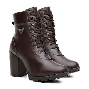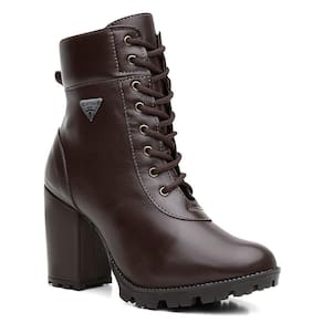 Bota Coturno Feminina Couro Cadarço Cano Médio Macia Casual - 39 - Marrom