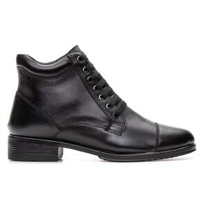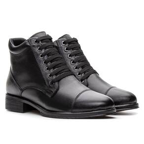 Bota Coturno Feminina Couro Cadarço Lisa Casual Moderna - 33 - Preto