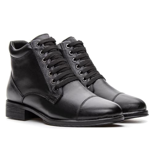 Bota Coturno Feminina Couro Cadarço Lisa Casual Moderna - 35 - Preto