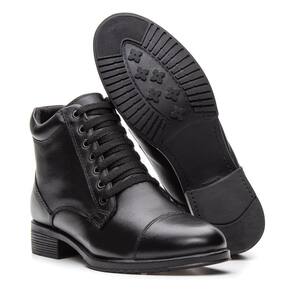 Bota Coturno Feminina Couro Cadarço Lisa Casual Moderna - 38 - Preto
