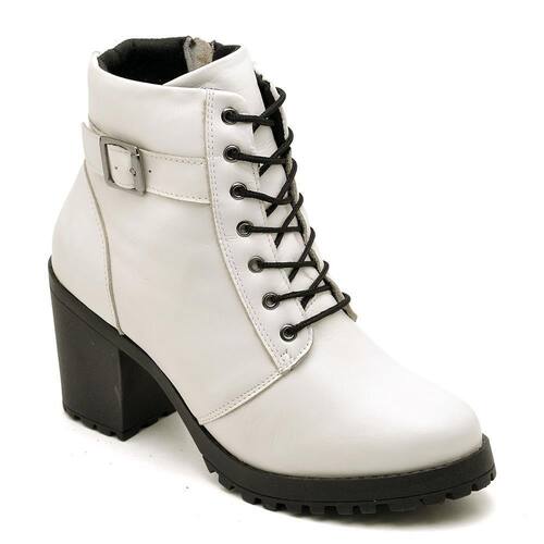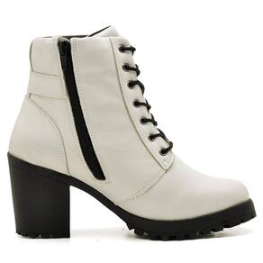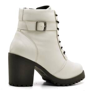 Bota Coturno Feminina Couro Cano Médio Tratorada Moderna - 39 - Branco