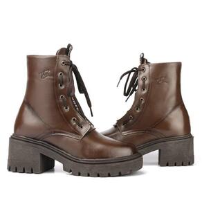 Bota Coturno Feminina Couro Tratorada Zíper Cano Médio Moda - 39 - Marrom