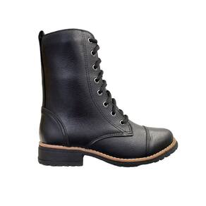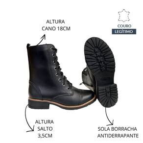 Bota Feminina Coturno Preto cano médio salto baixo confeccionada em couro, com detalhe em fecho para melhor ajuste na perna. Super confortável. - Cor: Preto e Caramelo (marrom claro) - Fechamento: fecho e/ou cadarço. - Forro interno em cacharrel 4mm. - Medida do Salto: salto 3,5 cm aproximadamente. - Altura do Cano: 18 cm - Circunferência cano: 26,0cm aproximadamente. - Solado borracha antiderrapante. - Forma normal. - Fabricação nacional. - Marca: QR Shoes FORMA NORMAL, PEGAR TAMANHO QUE USA NORMALMENTE EM BOTAS. MEDIDAS DA PALMILHA TAMANHO 34 22,8CM 35 23,5CM 36 24,3CM 37 24,8CM 38 25,5CM 39 26,2CM Marca: QR Shoes