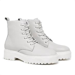 Bota Coturno Feminina Tratorada Com Cadarço Couro - 39 - Branco