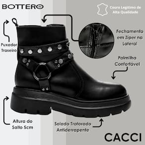 Bota Coturno Feminino Cano Baixo Salto Médio Bottero - Preto - 38