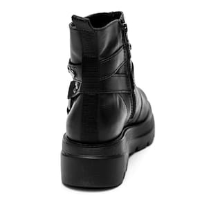O estilo da peça é versátil, podendo ser combinada com diversos looks. O detalhe característico é o solado tratorado, que adiciona um toque de personalidade ao design robusto do coturno.