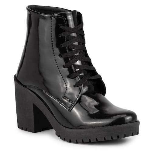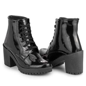 Bota Coturno Feminino com Salto Confortável Linda Verniz Preto Leve - 42 - Preto