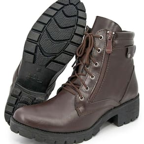 O coturno BR2 Lady foi desenvolvido para atender quem procura conforto e elegancia no melhor custo beneficio. Confeccionado em couro, forro em tecido, solado em borracha com 4 cm, palmilha confort e fechamento em cadarço. Altura do Cano (cm): 15 cm. Circunferência do Cano (cm): 30 cm. Diferencial: Oferece um ziper na lateral facilitando seu uso. Garantia do Fabricante: Contra Defeito de Fabricação .