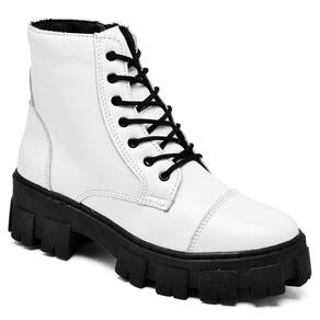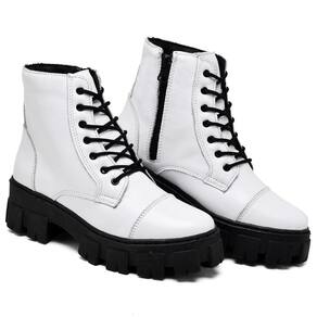 A bota coturno, é confeccionada em couro, possui forro respirável, palmilha super macia oferecendo muito conforto, o solado é de borracha.
