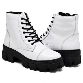 A bota coturno, é confeccionada em couro, possui forro respirável, palmilha super macia oferecendo muito conforto, o solado é de borracha.