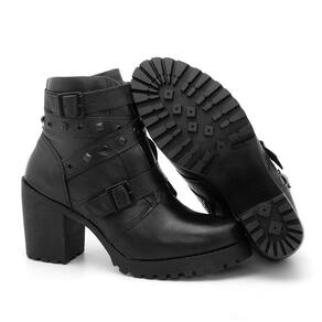 Bota Coturno Feminino Couro Fechamento Zíper Tratorada - 40 - Preto