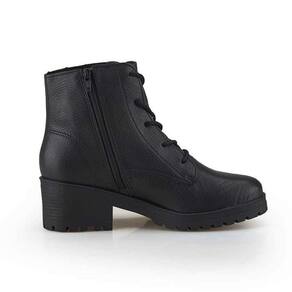 O fechamento em zíper lateral facilita muito o calce no dia a dia, e os cadarços reforçam o ajuste, deixando o coturno ainda mais funcional. A palmilha em espuma revestida em tecido oferece uma sensação de conforto prolongado, ideal pra acompanhar a rotina sem incômodos. O solado em borracha flexível com efeito antiderrapante traz segurança e estabilidade a cada passo, seja em passeios, trabalho ou momentos de lazer. E pra completar, o salto de 5 cm com meia pata de 1 cm garante aquela elevação na medida certa, sem comprometer o conforto.