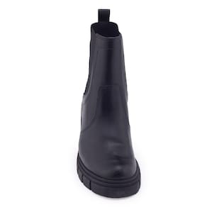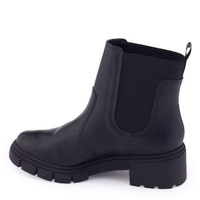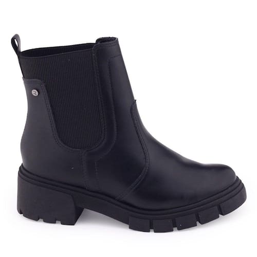 Bota Coturno 23-11123 tem cabedal fabricado em material sintético liso com detalhe em costuras. É um modelo confortável, para calçar basta colocar o pé seu ajuste é por elásticos laterais. Sua palmilha interna é fixa, macia e revestida em material têxtil apresentando a logo da marca. O solado tratorado, possui aproximadamente 4cm de altura traseiro e 1,5cm de altura frontal, é confortável e traz segurança ao caminhar. Seu solado possui frisos para maior segurança.