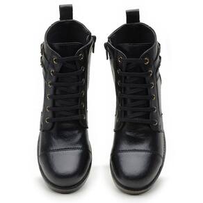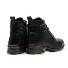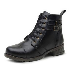 Bota Coturno Feminino Salto Baixo Cano Curto Detalhe Fivela Lateral Macia Confortavel - 35 - Preto