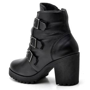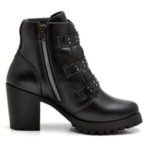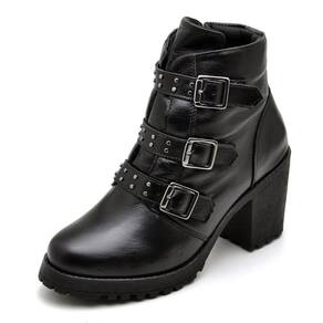 Bota Coturno Haldrys de Couro Cano Curto Tiras com Fivelas e Salto Grosso Medio - 36 - Preto