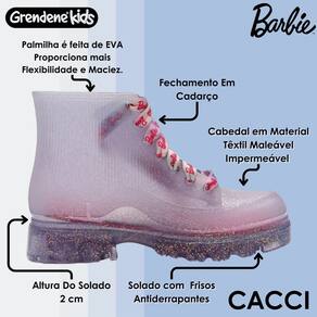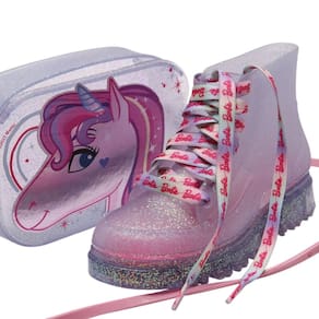 Estilo, brilho e muita personalidade para as pequenas arrasarem em qualquer ocasião! O Coturno Infantil da Barbie foi feito para meninas que amam moda, atitude e sonham alto como a personagem mais icônica do mundo. Com um visual fashionista e cheio de detalhes encantadores, ele traz cadarço sublimado com elementos que remetem ao universo da Barbie, combinando perfeitamente com a estampa da bolsa que acompanha o conjunto. Ideal para looks criativos e cheios de expressão, o coturno oferece conforto e segurança para acompanhar as pequenas em todas as aventuras do dia a dia, desde a escola até os passeios mais divertidos. A bolsa, em formato retangular, completa o visual com muito charme: traz cores vibrantes, texturas marcantes e uma arte exclusiva da Barbie com brilho na parte frontal, que encanta à primeira vista. Um conjunto cheio de estilo e magia, pensado para proporcionar não só beleza, mas também praticidade. O solado antiderrapante garante passos firmes e estáveis, enquanto o interior acolchoado do coturno oferece conforto durante todo o uso. Com excelente durabilidade e fácil de calçar, esse combo é a escolha perfeita para quem busca um look completo e encantador. Deixe a imaginação brilhar e leve para casa esse conjunto incrível da Barbie que vai conquistar o coração das pequenas fashionistas!