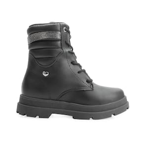 Nome: Bota Coturno Kidy KD24-36300. Gênero: Menina. Indicado Para: Moda. Estilo da Peça: Casual. Ocasião: Dia a dia. Material Externo: Alternativo com recortes e costuras. Material Interno: Têxtil acolchoado. Detalhes: Pin da marca na lateral externa e tira com aplicações de strass no cano. Fechamento: Cadarço. Palmilha: Anatômica e macia. Cano: Médio 12,5 cm de altura. Circunferência: 26 cm aproximadamente. Tipo de Solado: Levemente tratorado. Solado: Borracha antiderrapante. Peso do Produto: 818 g (o peso varia de acordo com a numeração). Garantia do Fabricante: Contra defeito de fabricação. Origem: Nacional. Código Produto: 04070276. Marca: Kidy.