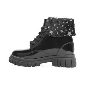 Nome: Bota Coturno LueLua LL24-13900. Gênero: Menina. Indicado Para: Dia a dia. Estilo da Peça: Lisa. Ocasião: Casual. Material Externo: PVC. Material Interno: PVC. Detalhe: Têxtil macio aplicado no cano com desenhos. Fechamento: Cadarço. Palmilha: EVA e removível. Tipo de Solado: Tratorado. Solado: PVC antiderrapante. Peso do Produto: 804 g (o peso varia de acordo com a numeração). Garantia do Fabricante: Contra defeito de fabricação. Origem: Nacional. Código Produto: 04070260. Marca: LueLua.