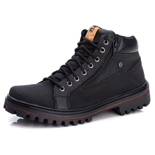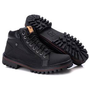 Bota Coturno Masculina Cano Curto Solado Borracha Resistente Trilha Fechamento Ziper Palmilha EVA - 40 - Preto