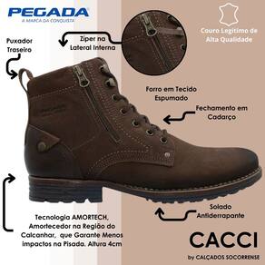 O coturno pegada de couro é um calçado resistente e durável, ideal para diversas atividades do dia a dia. O couro é um material nobre e naturalmente resistente, que oferece um visual elegante e sofisticado. O fechamento em cadarços e fecho ecler garante um ajuste seguro e confortável, além de proporcionar um design moderno e diferenciado.