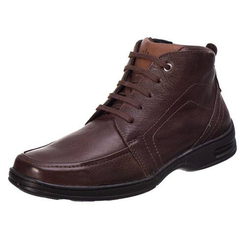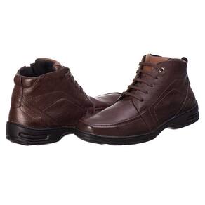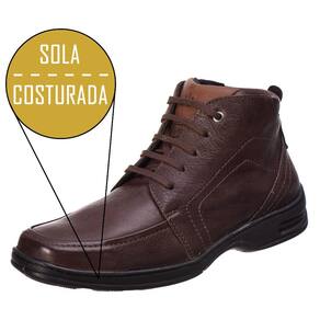 Bota Coturno Masculino Couro Liso Macio Confortavel Ajuste Cadarço Solado Confort - 40 - Marrom