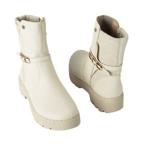 A Bota Pink Cats Infantil de Cano Médio Bege é a escolha ideal para pequenas que valorizam conforto e estilo. Com um design minimalista e atemporal, ela se adapta a diversos looks, desde os casuais até os mais descolados. A sola tratorada de 4 cm proporciona segurança e estabilidade a cada passo, enquanto a textura discreta na parte de trás do cano e a tira com fivela metalizada oferecem um toque de charme e modernidade. Feita de material sintético de alta qualidade, essa bota é resistente e fácil de limpar, perfeita para acompanhar as crianças em todas as suas aventuras. Com uma altura de cano de 16 cm e circunferência de 23,5 cm, ela garante o ajuste ideal, proporcionando conforto e liberdade de movimento. Além disso, o zíper lateral facilita o calce e a retirada, tornando a bota ainda mais prática. Versátil, essa bota combina perfeitamente com jeans, leggings ou vestidos, criando looks estilosos e confortáveis para qualquer ocasião.