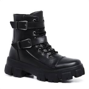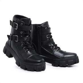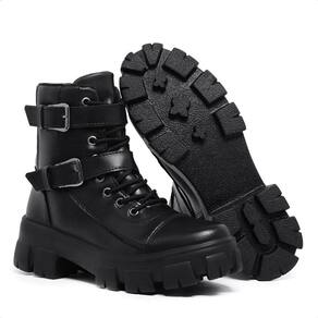 Bota Coturno Rock Life Duas Fivelas Sola Tratorada Preto