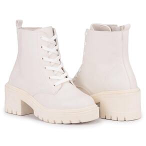 Bota Coturno Salto Alto Tratorada Macia Feminina Cano Médio - 36 - Branco