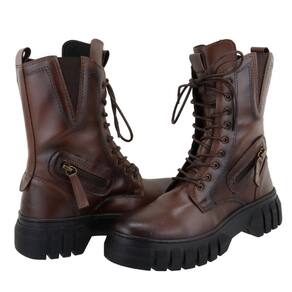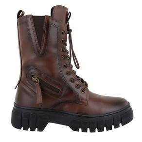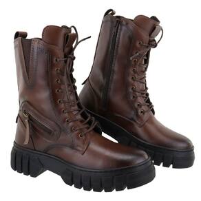 Bota Coturno Tratorada Feminina Motoqueira Fechamento Cadarço Ajuste Elastico Sola Borracha - 36 - Marrom