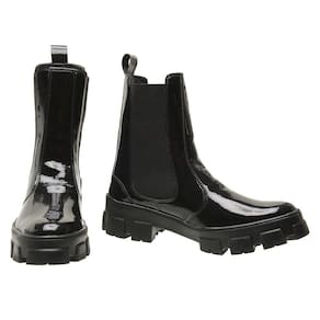 Bota Coturno Verniz Cano Médio M&D Store Calce Fácil Sola Macia - 40 - Preto