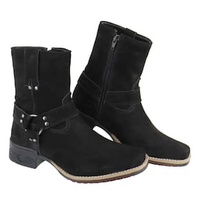 Bota Country Couro Cano Médio Aplicaçoes Argola Lateral Sola Borracha Costurada Palmilha EVA - Preto - 39
