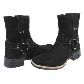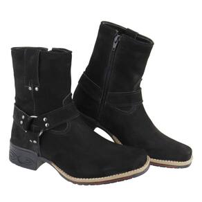 Bota Country Couro Cano Médio Aplicaçoes Argola Lateral Sola Borracha Costurada Palmilha EVA - Preto - 34