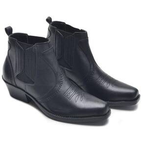 Bota Country Masculina Couro Cano Curto Elástico Bordada - 37 - Preto