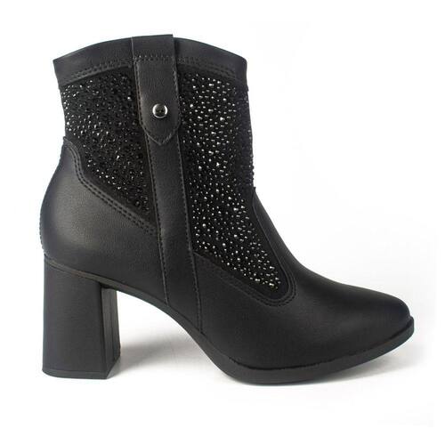 Marca: Dakota Altura do salto: 7,3cm aproximadamente Altura do cano: 17cm aproximadamente Material externo: Napa/Sintético/Strass Material interno: Têxtil Material da palmilha: PU (Poliuretano) Material da sola: Emborrachado Acabamento: Colado/Costurado Ocasião de uso: Casual / Dia a Dia Modelo: G9904 Referência: G9904-01 Detalhes: Brilho / Hotfix / Salto Bloco.