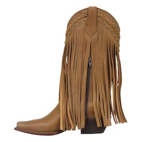 Uma Bota Texana feminina na da nossa marca exclusiva Cow Way, fabricada em couro trabalhado de alta qualidade, possui cano alto com franjas e rebites demonstrando muita personalidade de quem a usa, alças e zíper para facilitar o calce, bico fino com florão costurado, vira com costura reforçada e solado em couro para quem gosta de elegancia. Por dentro, toda revestida em couro e com um grande diferencial, uma palmilha de alta qualidade feita para você que quer um conforto maior no uso da bota em qualquer situação. Uma peça que não pode faltar no guarda roupa da cowgirl, seja na montaria ou no dia a dia!