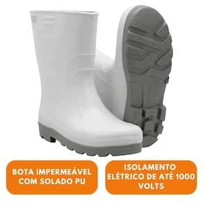 Bota de Proteção Para Eletricista Galocha Cano Curto Impermeável EVA Overtech BEPCC02 Vulcabras - 43 - Branco