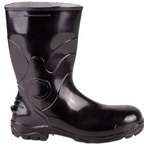 Especificações técnicas - Material: PVC (policloreto de vinila) de alta resistência - Cano curto: praticidade para calçar e movimentar-se - Biqueira: aço carbono para proteção contra impactos - Palmilha: aço resistente a perfurações - Solado: PVC com sistema de absorção de energia e ranhuras antiderrapantes