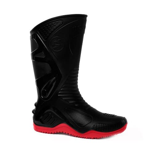 Cano: espessura 2,0 mm na borda superior do cano, aumentando gradativamente chegando a 2,5 mm na altura do tornozelo e 3,5 mm na união do cano com a sola; Reforço lateral para proteção nos tornozelos; Estrias horizontais que facilitam o calçar: Contém polímero plástico em PVC e massa nitrílica (toque emborrachado melhora o grip, melhora a resistência a abrasão, impede o ressecamento e trincas e minimiza a agressão do sangue).
