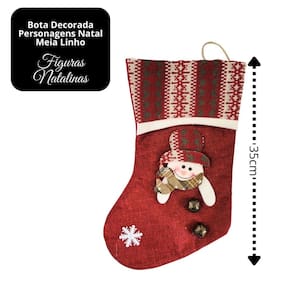 Bota Decorativa Meia Natalina Boneco de neve – Linho Vinho 35cm com Guizos