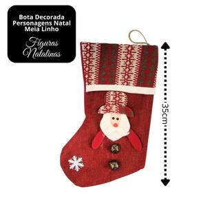 Bota Decorativa Meia Natalina Papai Noel – Linho Vinho 35cm com Guizos