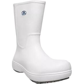 Especificações técnicas - Material: Confeccionada em EVA (Etil Vinil Acetato), um material leve e atóxico. - Proteção: Com Biqueira Composite aprovado para proteção contra impacto no nível de energia de no mínimo 100 J e contra a carga de compressão de no mínimo 10 KN. Cerca de 50% mais leve que a Biqueira de Aço tradicional. - Solado: Solado de borracha antiderrapante com Tecnologia Super Grip, resistente ao escorregamento em piso cerâmico (com solução de detergente) e em piso de aço (com solução de glicerol). - Isolamento: Oferece isolamento contra o frio e isolamento elétrico, garantindo proteção adicional. - Higienização: Facilmente lavada com água, sabão ou detergente e desinfetada com hipoclorito de sódio. - Certificação: Conformidade com normas de segurança – CA 39347.