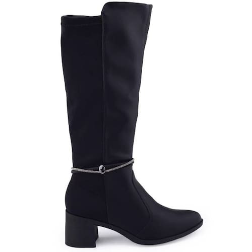 Bota Feminina Cano Alto Maleável Salto Bloco Médio Com Strass Dakota G9622