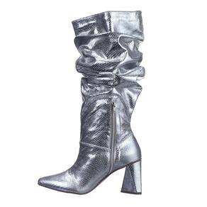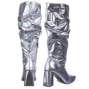 A bota Flor da Pele é indicada para mulheres modernas. Confeccionada em material de alta qualidade com o acabamento croco metalizado que traz um toque moderno e atual. Solado em borracha prestando estabilidade e segurança, fechamento com zíper oferecendo praticidade no calçar. Salto geométrico triangular aumentando o conforto no caminhar, cano alto com modelo sloucky traz um design único ideal para combinar com vários looks.